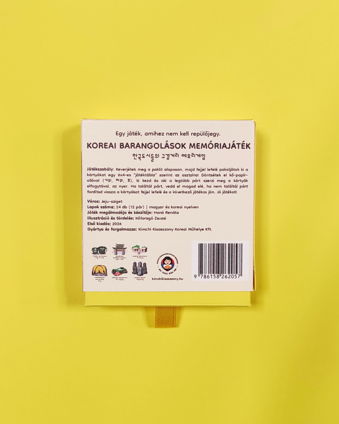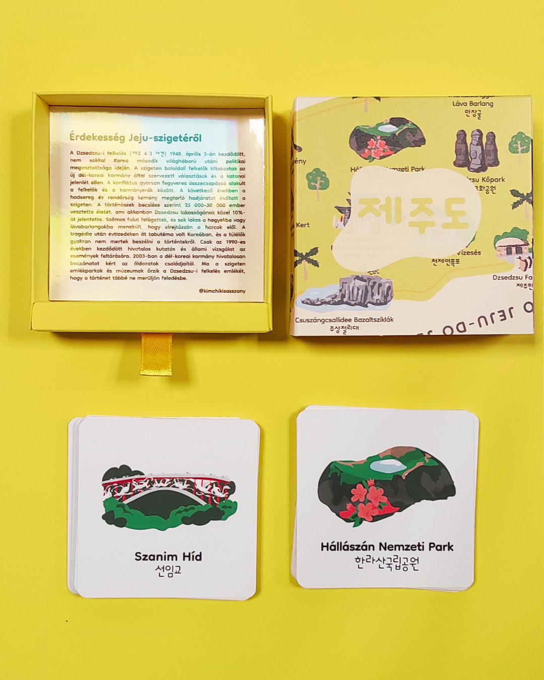 Tartalom: 24 db látványosság kártya (12 db pár) – koreai és magyar feliratokkal